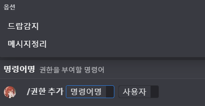 드랍감지 , 메시지정리 명령어 경우 서버관리자만 사용이 가능하나 해당 권한(역할)이 부여되면 해당 명령어를 사용 할 수 있습니다.