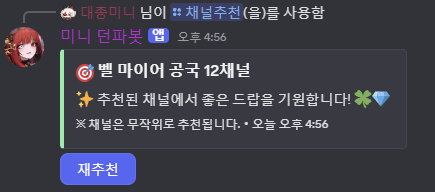 하단 재추천 버튼을 통해 다시한번 리롤 할 수 있습니다.