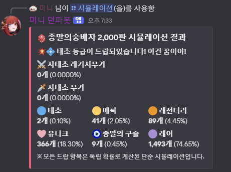 종말의 숭배자 시뮬레이션 기능입니다. 확률 경우 커뮤니티를 참고하여 적용하였습니다.