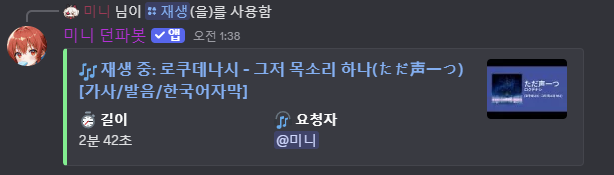 ps. 미니 던파봇 과 미니 뮤직봇 합치고 싶은데 버그랑 부하가 심할거같아서 못하겠다..