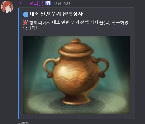| 디스코드 던파 미니봇 에픽 태초 드랍감지 업데이트 (0) | 2025.03.26 |