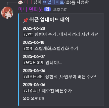 | 미니 던파봇 06-07 개선 및 업데이트 (0) | 2025.06.06 |