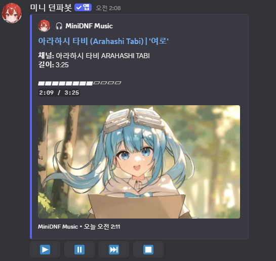 2. 하단 이모지 버튼을 통해 노래를 제어 할 수 있습니다.