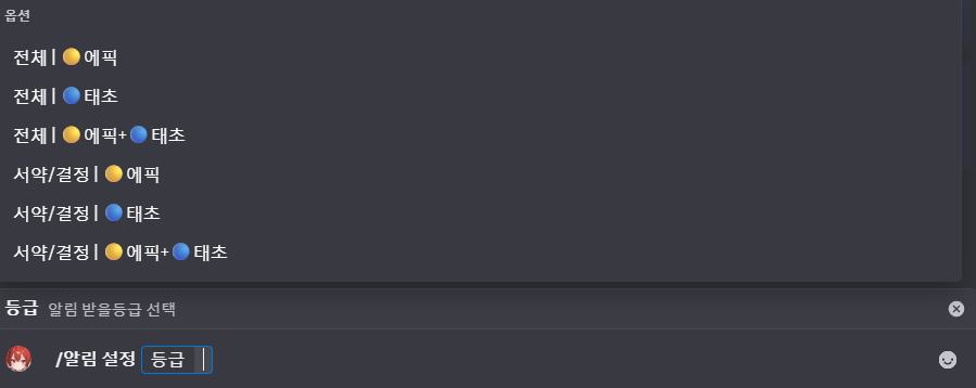 기본값은 전체(에픽+태초)로 설정되어 있습니다.